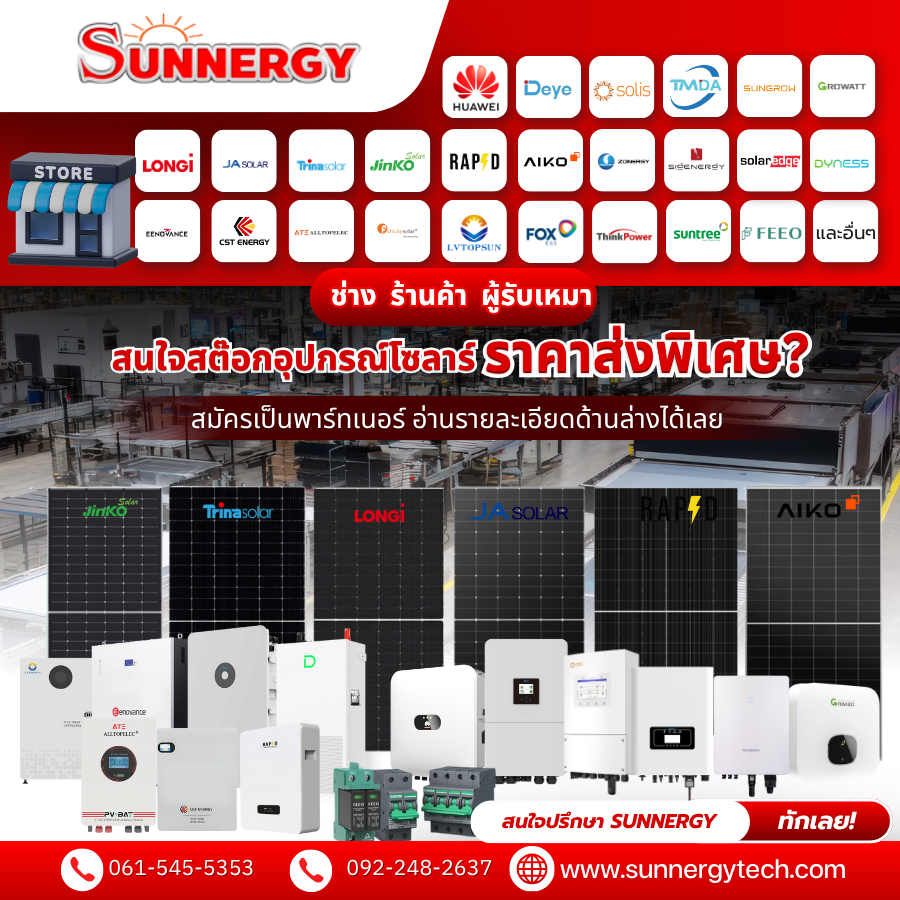 ด้วยประสบการณ์และความเชี่ยวชาญในวงการโซลาร์ บริษัทของเราพร้อมให้คำแนะนำอย่างมืออาชีพและจัดจำหน่ายสินค้าคุณภาพในราคาที่เหมาะสม โดยเฉพาะราคาส่งสำหรับร้านค้า ช่างติดตั้ง และผู้รับเหมาระบบโซลาร์ ซึ่งสามารถสอบถามเงื่อนไขพิเศษได้โดยตรงกับทีมงานฝ่ายขาย