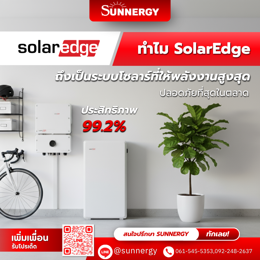 หากคุณกำลังมองหาระบบโซลาร์เซลล์ที่ให้พลังงานสูงสุดในทุกแผง ปลอดภัย และรองรับอนาคตได้อย่างยั่งยืน SolarEdge คือคำตอบที่เหมาะที่สุดสำหรับบ้านและธุรกิจของคุณ