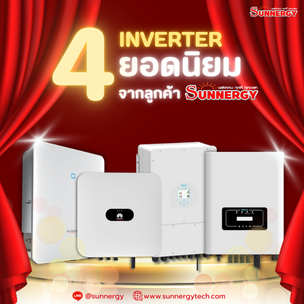 วันนี้ Sunnergy ภูมิใจนำเสนอ 4 อินเวอร์เตอร์ยอดนิยม ที่ตอบโจทย์การใช้งานที่หลากหลาย มาพร้อมกับคุณสมบัติพิเศษที่ออกแบบมาเพื่อตอบสนองความต้องการเฉพาะของผู้ใช้งานแต่ละประเภท