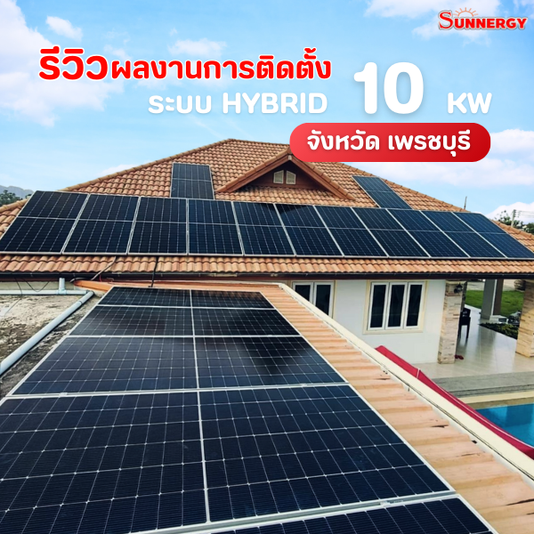 รีวิวผลงานการติดตั้งโซลาร์เซลล์ ระบบ Hybrid 10KW จังหวัดเพชรบุรี | Sunnergytech
