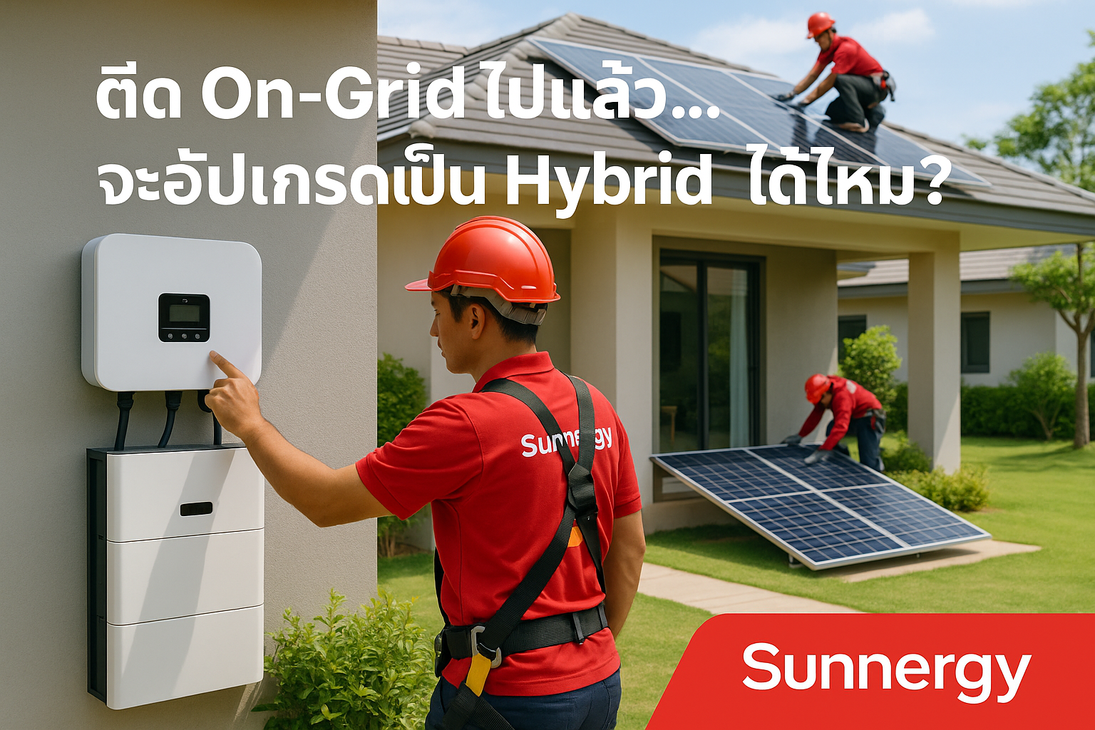 เรียนรู้วิธีอัปเกรดระบบโซล่าเซลล์แบบ On-Grid ให้เป็น Hybrid ประหยัดค่าไฟได้มากขึ้น พร้อมมีไฟสำรองใช้ยามไฟดับ ทำได้จริงหรือไม่? คุ้มค่าแค่ไหน? Sunnergy มีคำตอบ