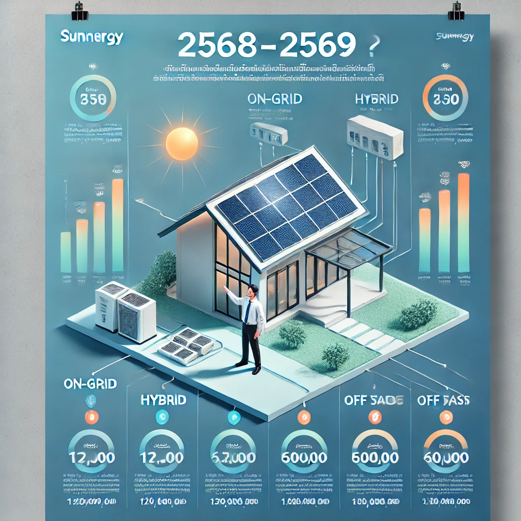Hybrid | 5 kW + แบต | บ้านพักอาศัย/โฮมออฟฟิศ | 350,000 – 450,000 |