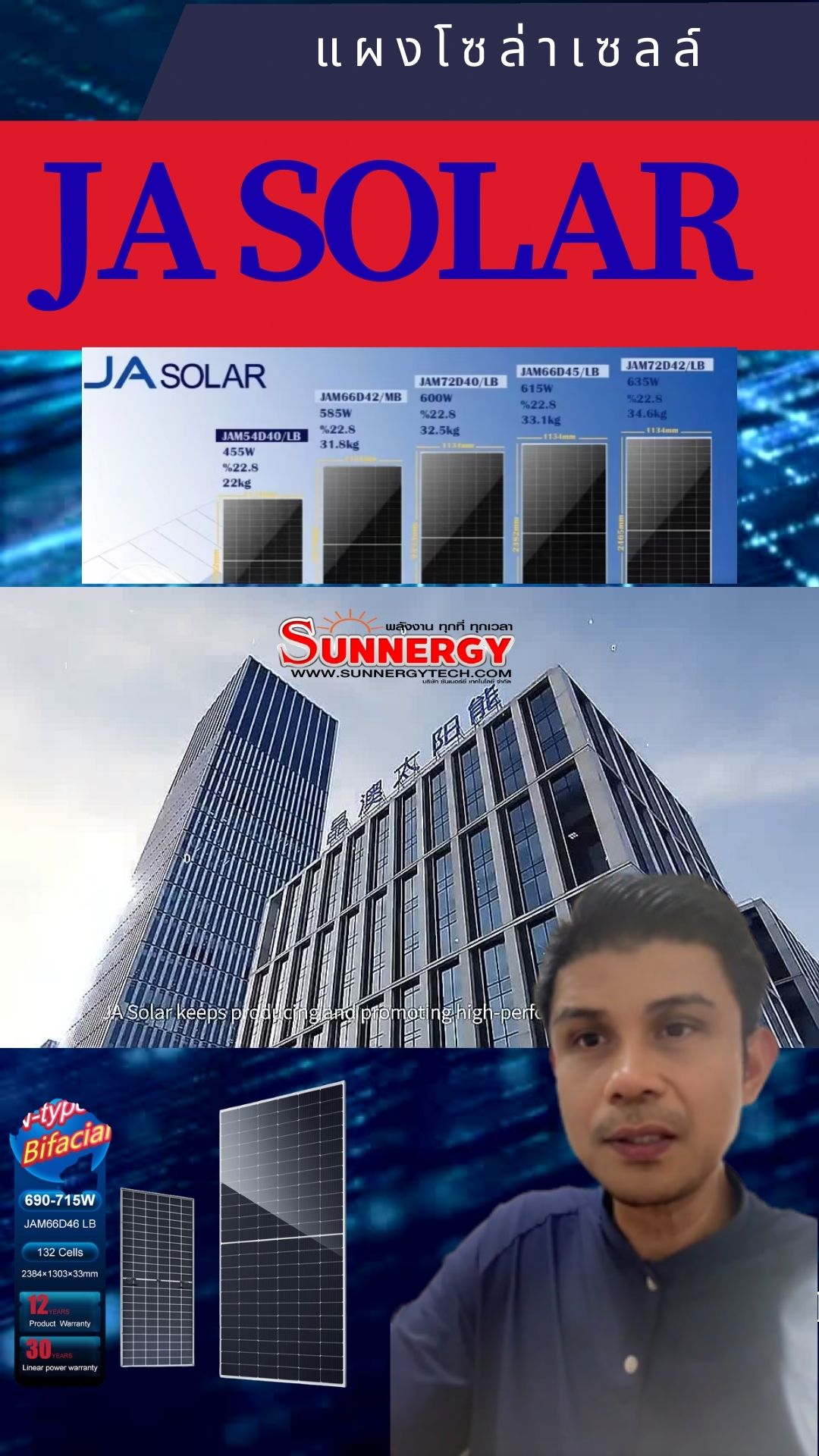 บทความนี้ Sunnergy จะพาคุณไปรู้จักกับ JA SOLAR อย่างละเอียด ทั้งประวัติ จุดเด่น เทคโนโลยี ราคา และการเลือกใช้งานที่เหมาะสม เพื่อช่วยให้คุณตัดสินใจได้ง่ายขึ้นครับ