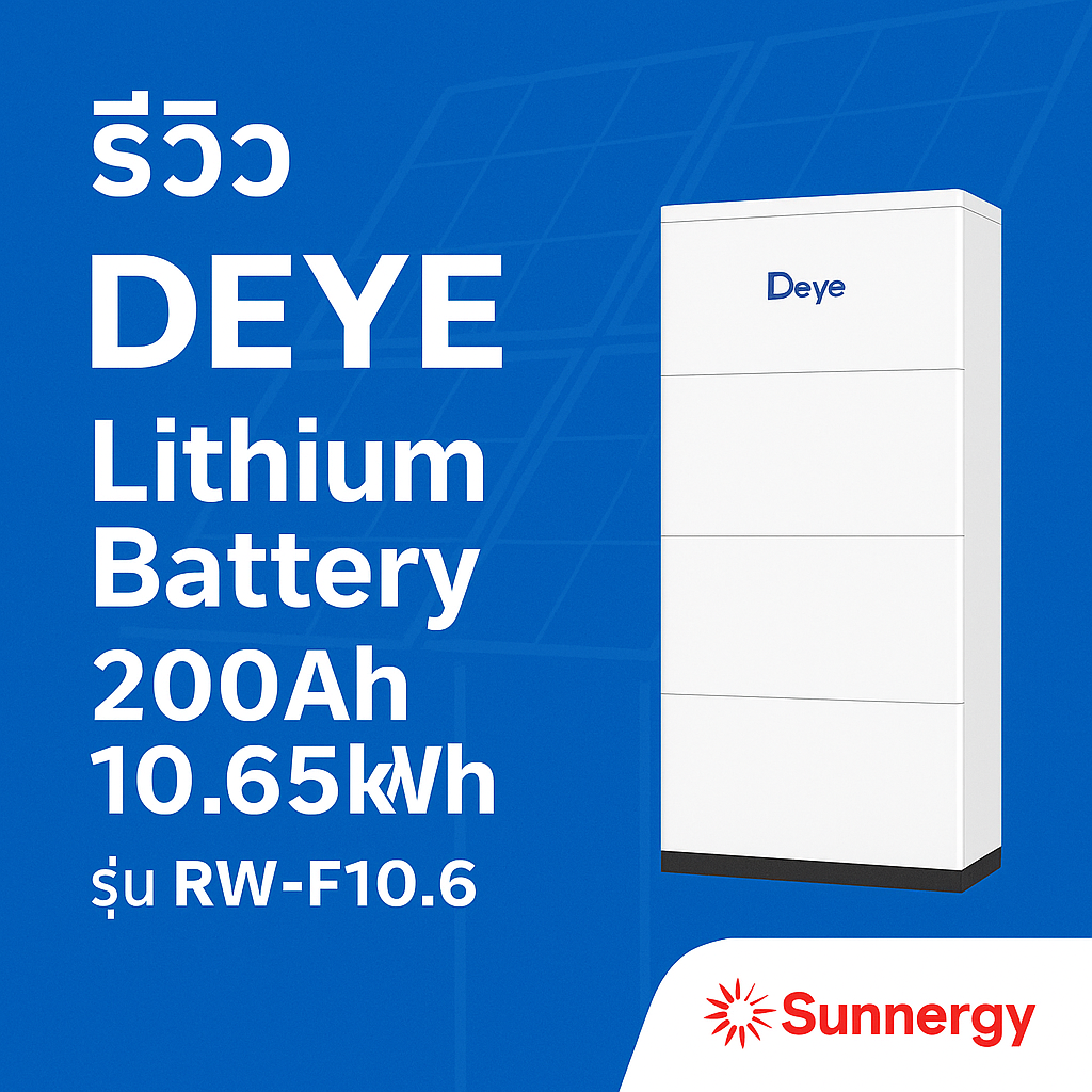 แบตเตอรี่ Deye RW-F10.6 เป็น Lithium Battery แบบ LV ความจุ 10.65kWh (200Ah) เหมาะสำหรับบ้านขนาดใหญ่และธุรกิจ SME ที่ต้องการระบบไฟสำรองยาวนาน