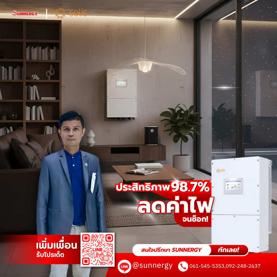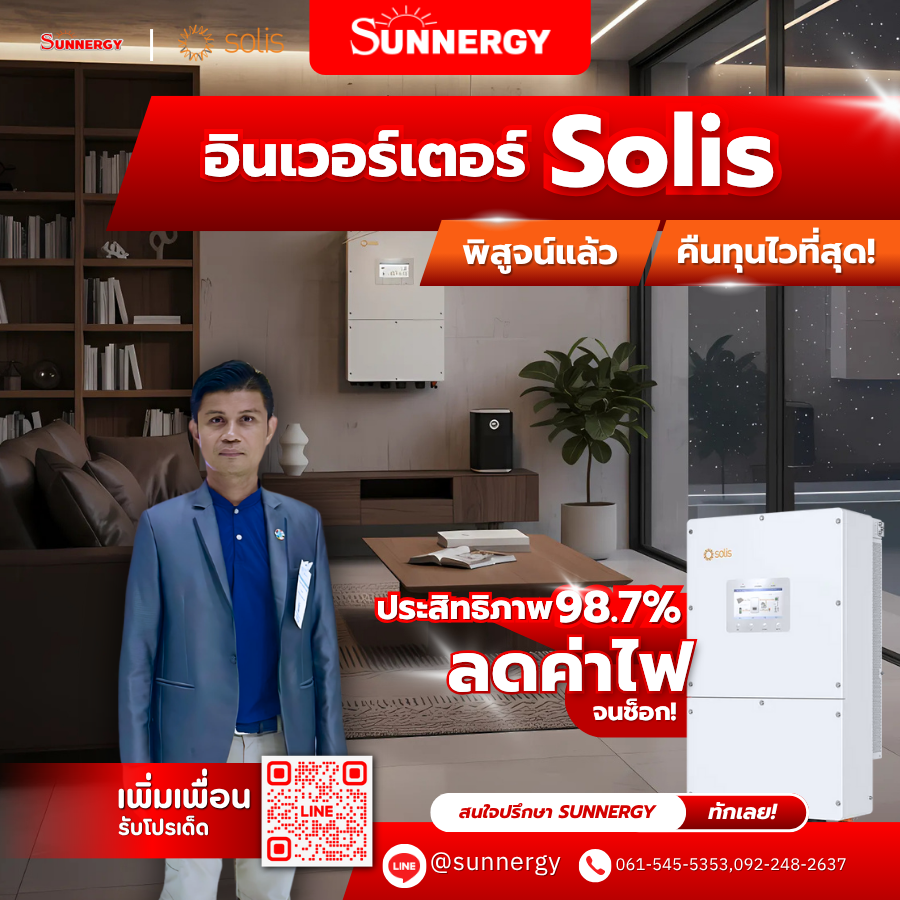 📞 ติดต่อซันเนอร์ยี่วันนี้ เพื่อรับคำปรึกษาฟรี และรับการประเมิน "แผนคืนทุนไวที่สุด" ด้วย Solis Inverter ประสิทธิภาพ 98.7% สำหรับบ้านหรือธุรกิจของคุณ!