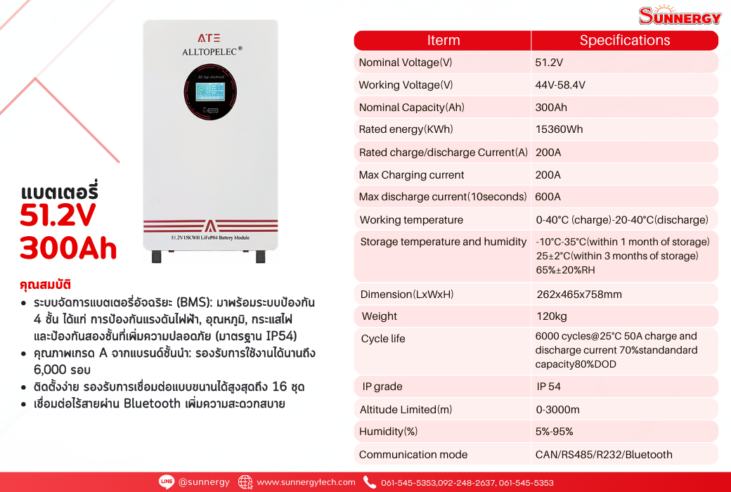ATE ALLTOPELEC Battery LiFePO4 แบตเตอรี่โซล่าเซลล์ ชนิดลิเธียมฟอสเฟต 51.2V 300Ah