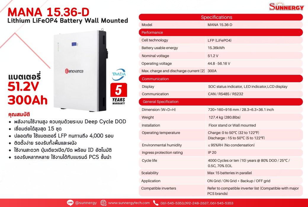 ข้อดีของ Eenovance MANA 15.36-D 51.2V 300Ah